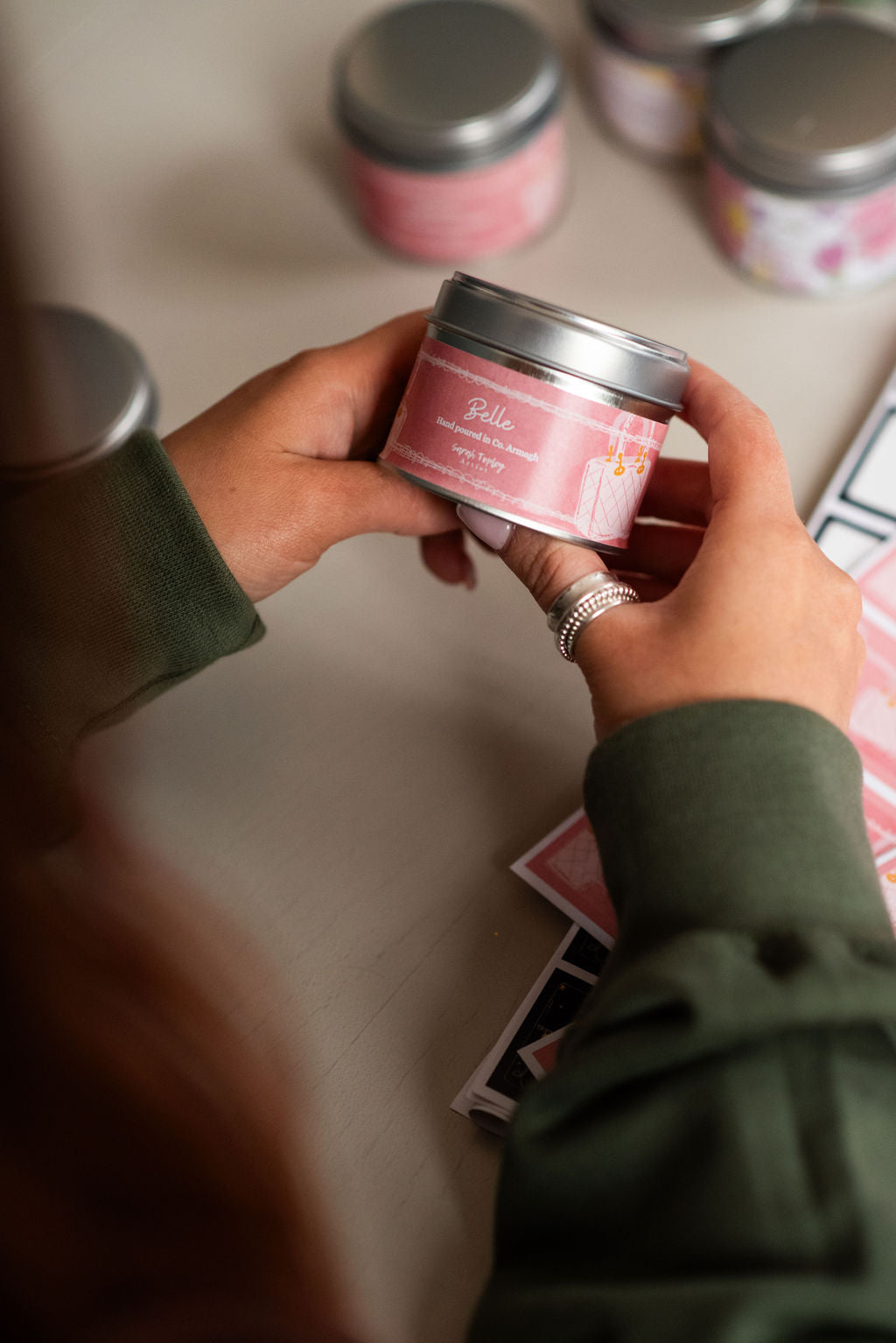 This candle is hand poured in County Armagh by Scents by Suzanne and the packaging designed by Sarah Topley Artist.