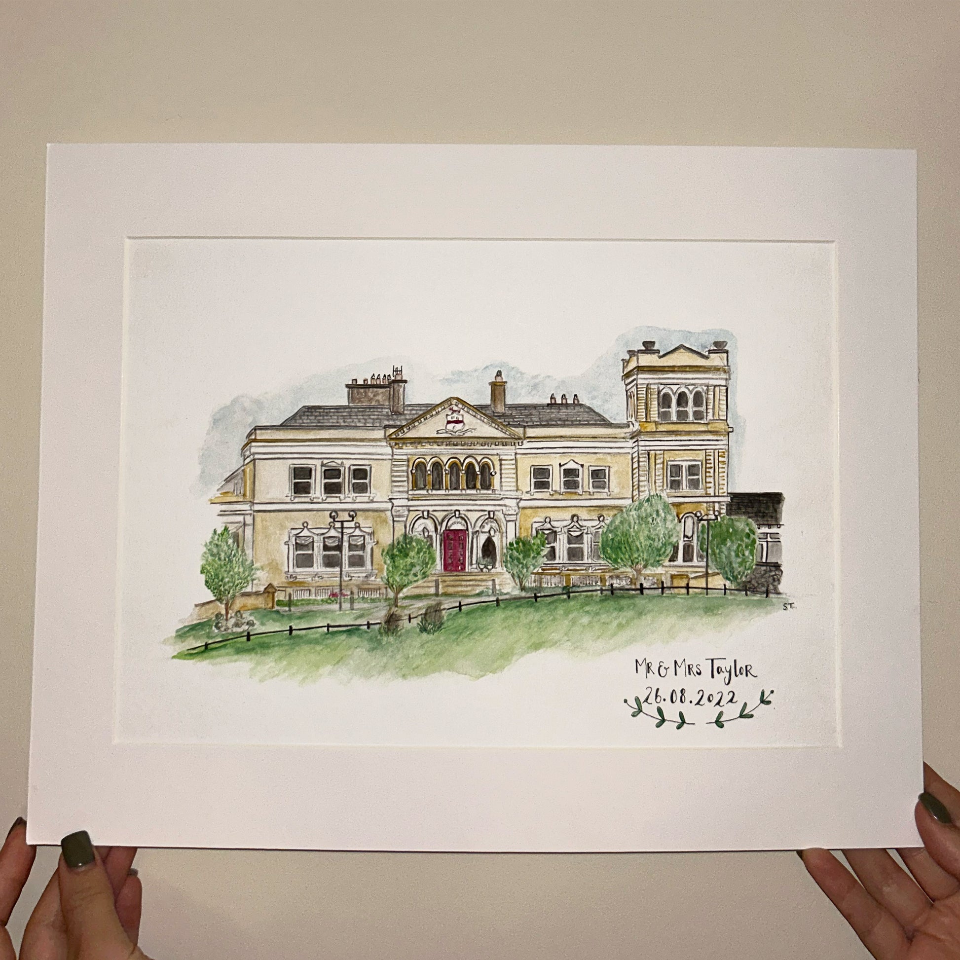 The venue of choice can be confirmed via email. Please remember to include your order number and any extra details you would like added to the illustration.